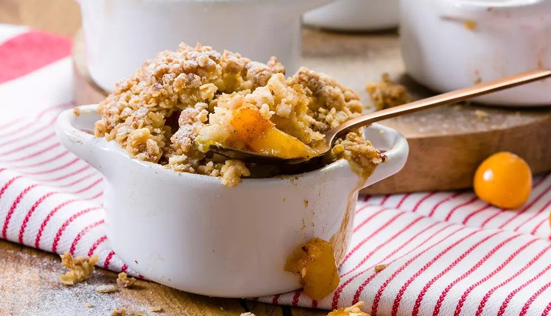 This physalis crumble is a heart-warming dessert. The oatmeal gives the crumble a nice crunch. Add an extra delicious touch with a scoop of vanilla ice cream.